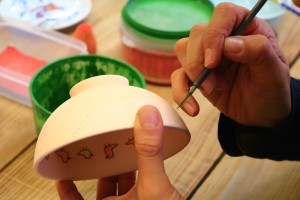 絵筆を使った染付のほか、スタンプなど、やきもの産地ならではの絵付け体験をご提供しています。